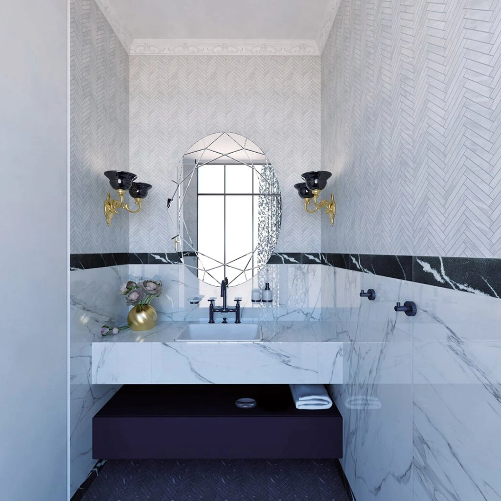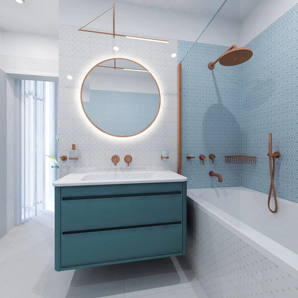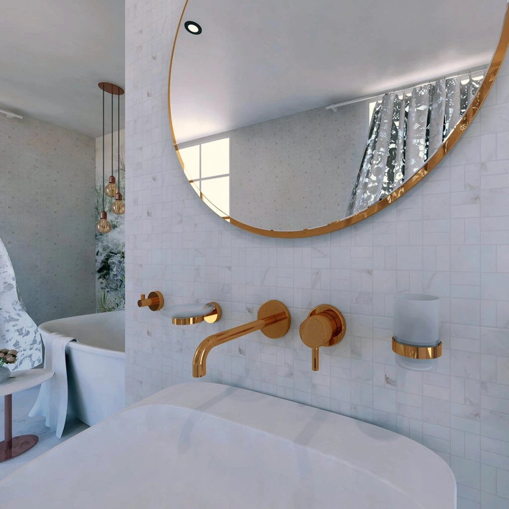 • A wide range of bathroom accessories: towel holders, soap dishes, mirrors, toilet brushes, towel warmers, floor drains, and more