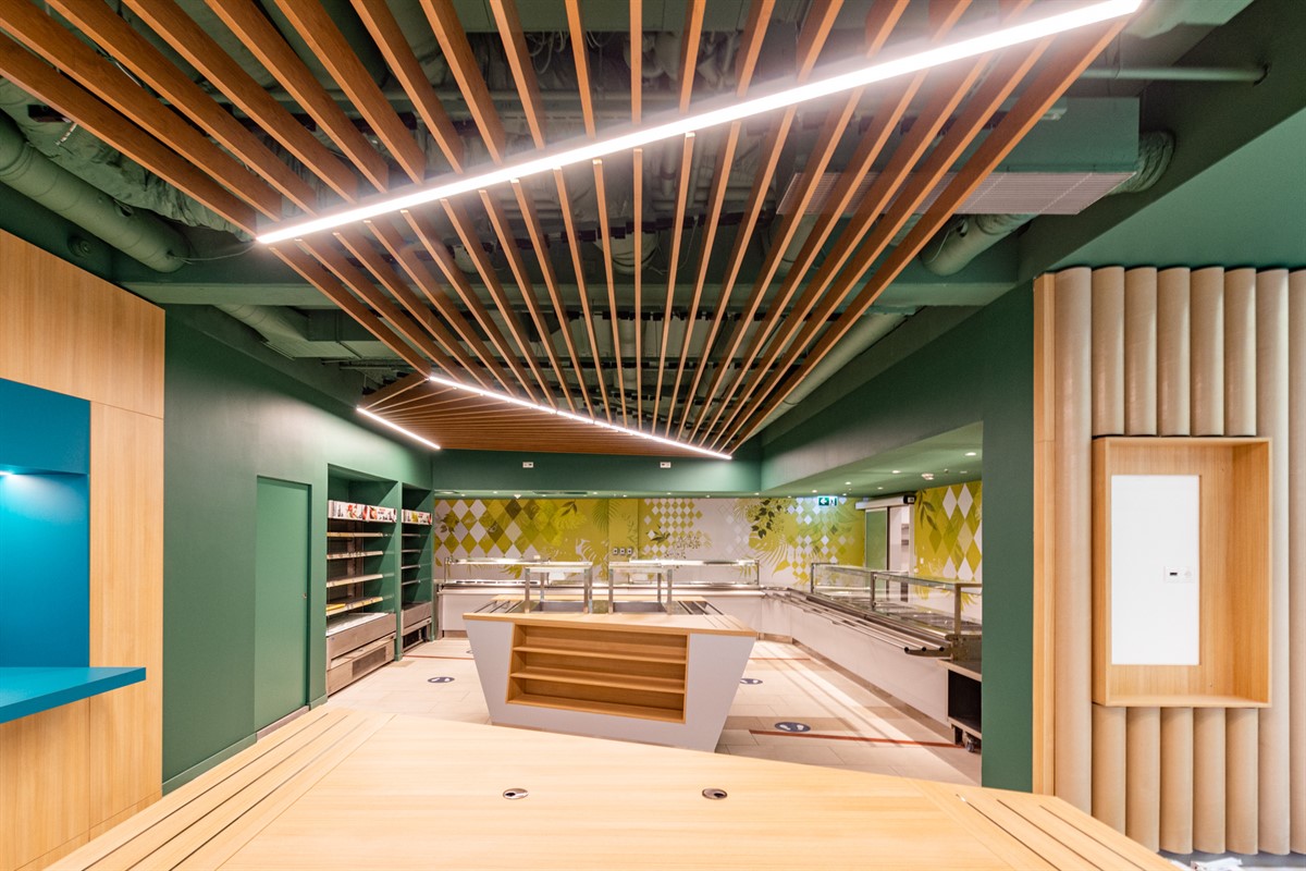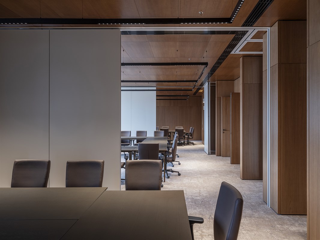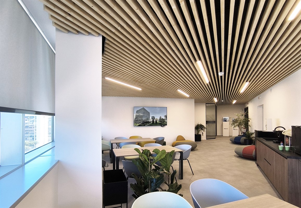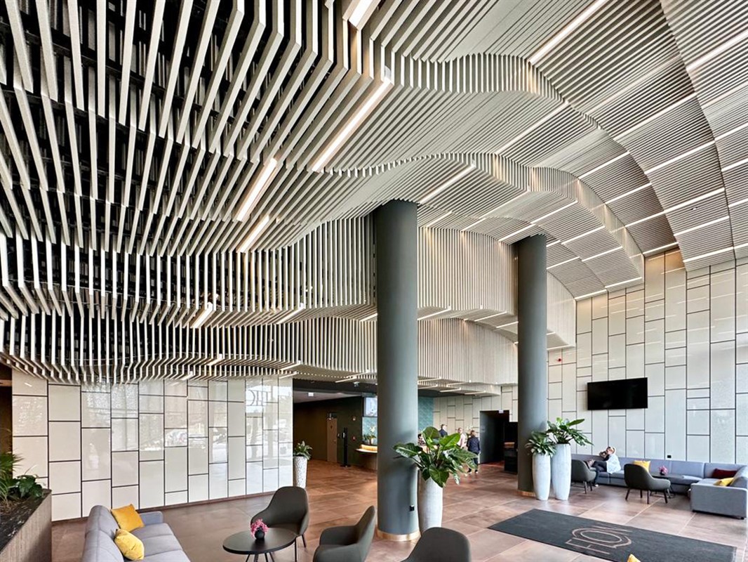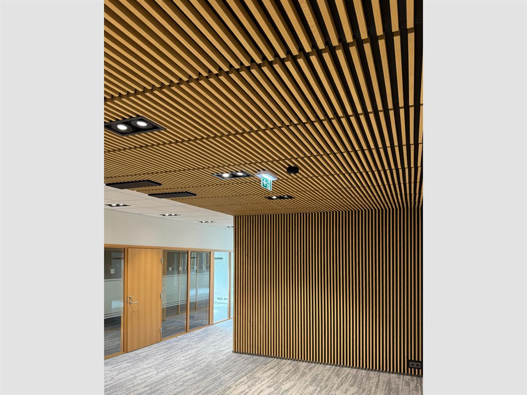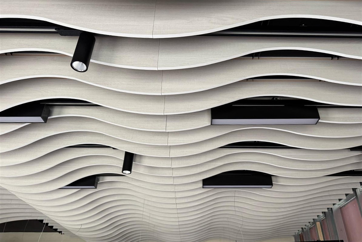 The CBI product range includes metal ceilings — both perforated with sound-absorbing infill and smooth panels providing high fire resistance and moisture protection — as well as wooden panel solutions that add natural warmth and elegance to the interior.