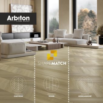 The vinyl flooring design innovation ShapeMatch from the DECORA S.A. Arbiton brand allows you to combine different floor covering boards and their arrangement, maintaining complete colour harmony in one room or between rooms. Three collections are offered: Amaron Wood, Amaron Herringbone and Amaron Chevron, each with eight decor options. Vinyl flooring is based on a mineral core (HD MINERAL CORE), which is a mixture of natural minerals and modern polymers.