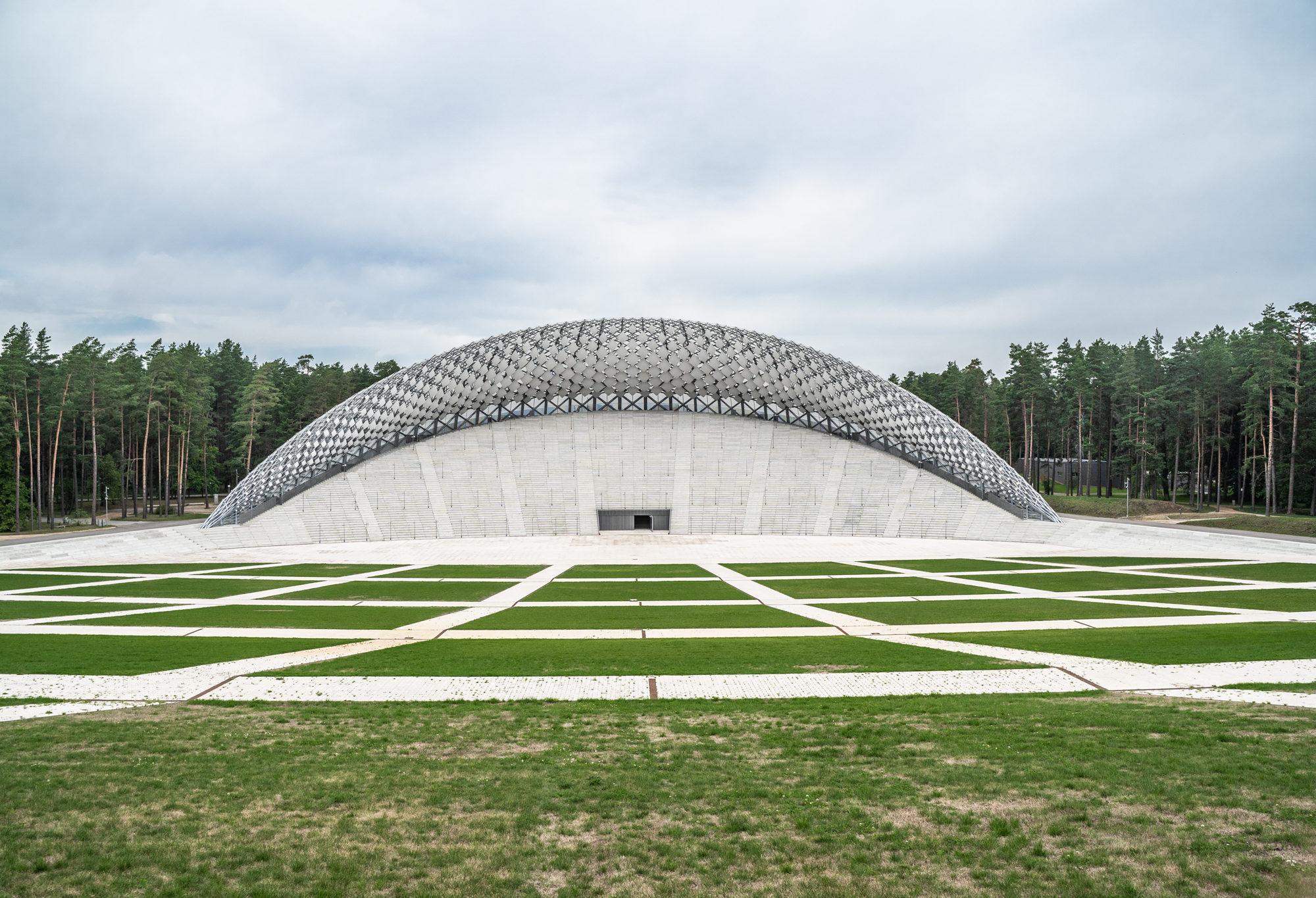 Authors of the design are the Latvian architects Juris Poga and Austris Mailītis. After the reconstruction, the Mežaparks Great Bandstand has acquired the image of a Silver Grove on a mountain of songs, as intended by the authors of the idea. After the reconstruction, the total area of the Mežaparks Great Bandstand accounts for 146,430 m2, and the project is recognised at the European level as a unique and complicated one with an individual acoustic solution.