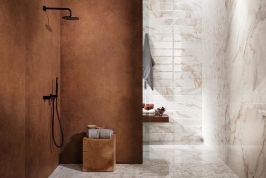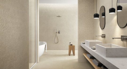 These collections will reveal the multifaceted character of ceramic tiles to you, reflected through materials such as concrete, stone or marble. The room will gain a feeling of tenderness with the presence of natural wood. Tones of stone, concrete or wood may initially seem too dark; in this case, we recommend selecting light brown, marble white or ocean clear water tones, which will help create natural lighting in the room.