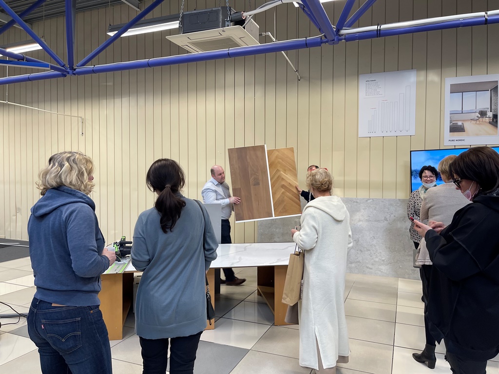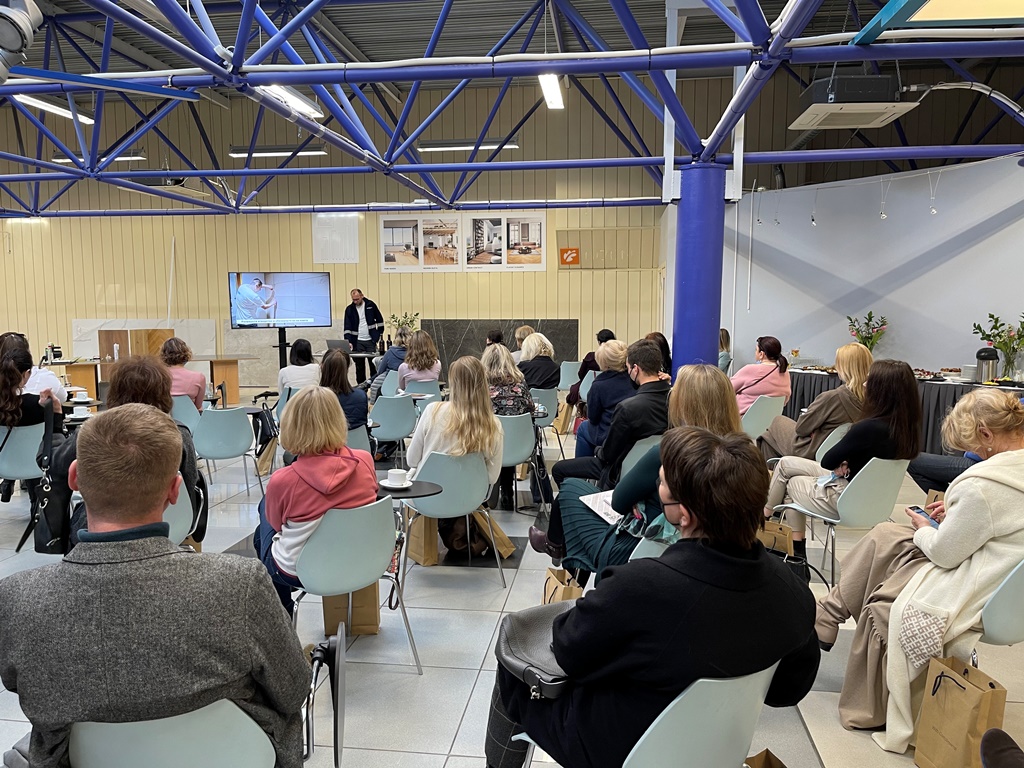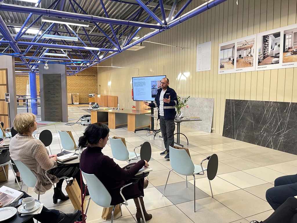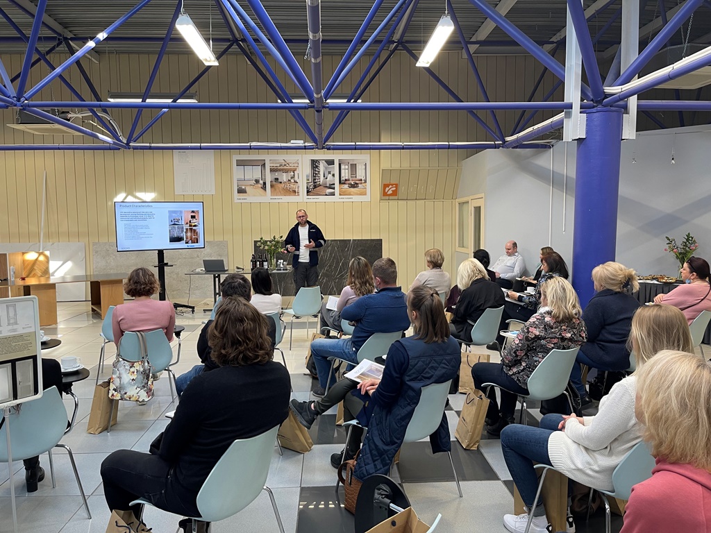 Aicinātiem viesiem, Reaton patstāvīgajiem klientiem – dizaineriem un arhitektiem,  bija unikāla iespēja noklausīties, Kronospan pārdošanas pārstāvja prezentāciju, kurš Latvijā bija ieradies no Polijas.