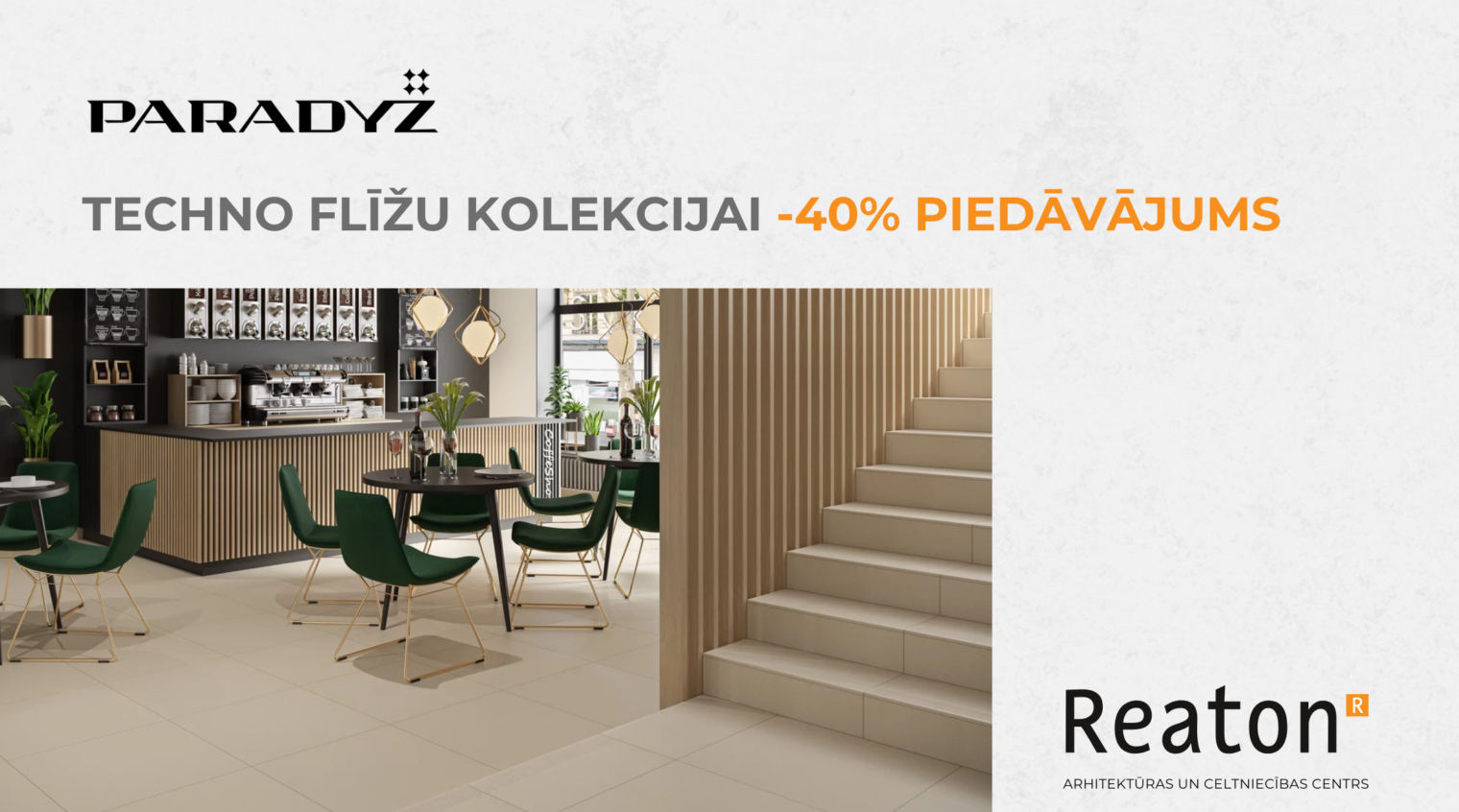 ĪPAŠAIS FLĪŽU PIEDĀVĀJUMS Reaton Arhitektūras un celtniecības centrā. Ceramika Paradyż kolekcijas TECHNO flīzes par 14,35 EUR/m².