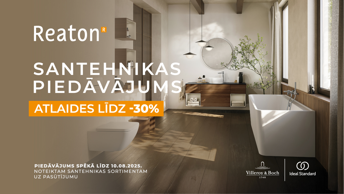 Līdz –30% atlaide santehnikai no Villeroy & Boch un Ideal Standard. Reaton – vieta, kur top idejas Tavai sapņu vannasistabai. Piedāvājums spēkā līdz 10.08.2025. Piedāvājums spēkā līdz…