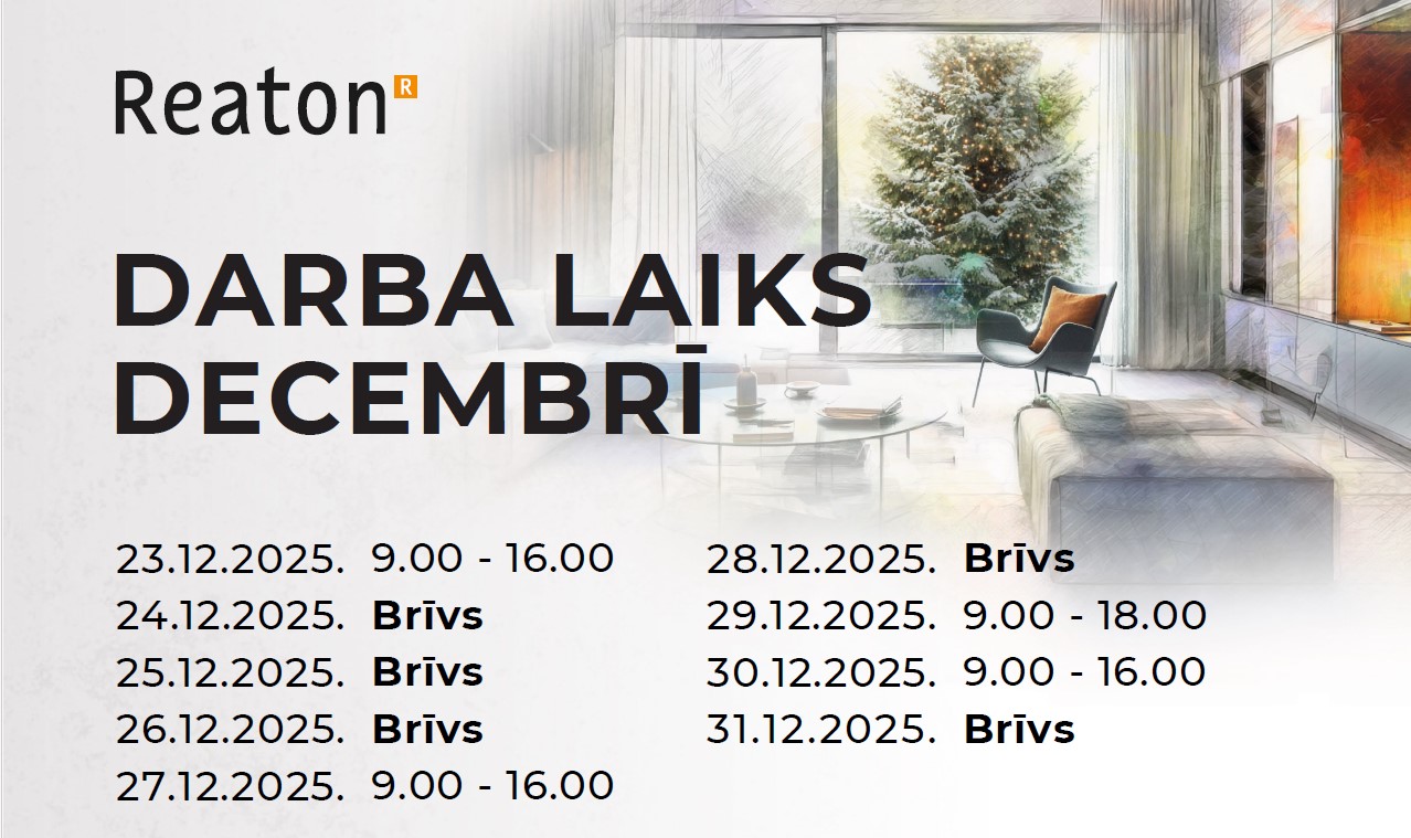 23.12.2025.: 09:00 – 18:00 24.12.- 26.12.2025.: BRĪVS 27.12.2025.: 09:00 – 16:00 28.12.2025.: BRĪVS 29.12.2025.: 09:00 – 18:00 30.12.2025.: 09:00 –…