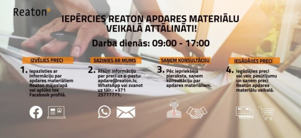 Reaton apdares materiālu veikals katru darba dienu no 09:00 līdz 17:00 turpina sniegt konsultācijas un apkalpot gan attālināti, gan klātienē. Par pieejamiem…