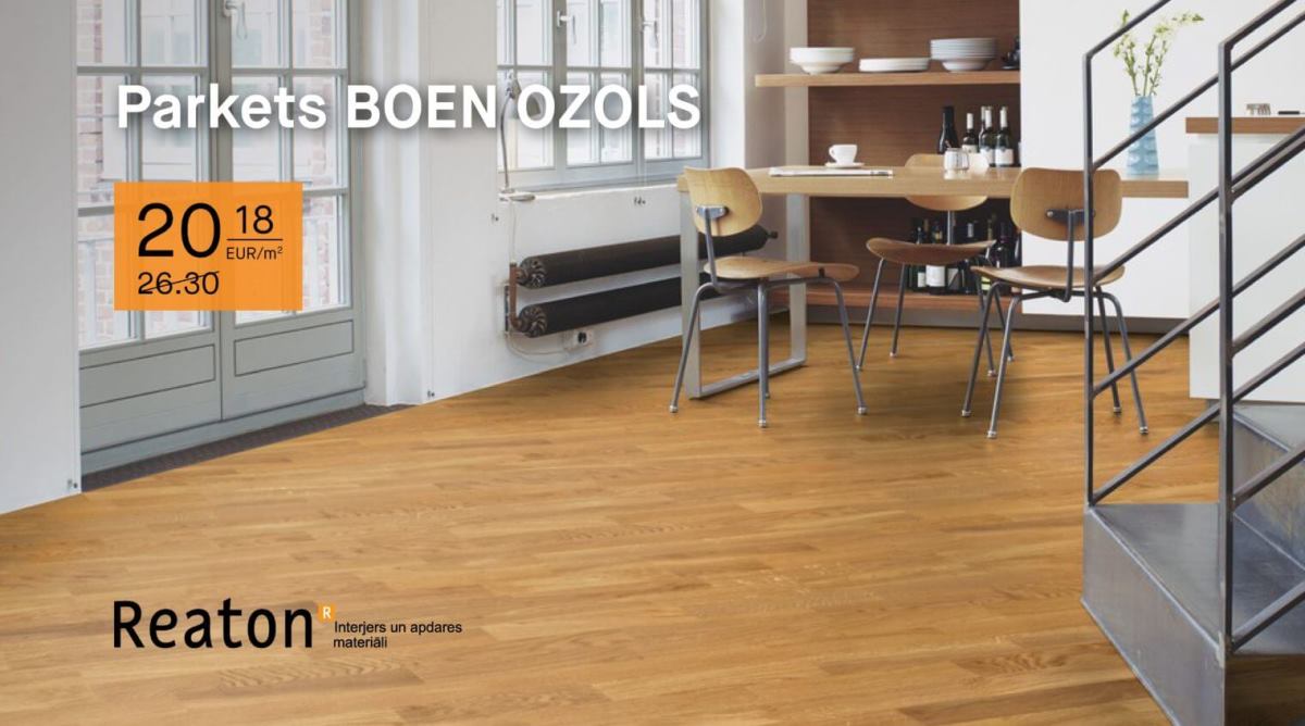 Būvniecības izstāde “Māja I 2020” ietvaros, Reaton apdares materiālu veikalā īpaša akcija BOEN un COSWICK parketam. Parkets BOEN OZOLS, 3 veidi: Oak…