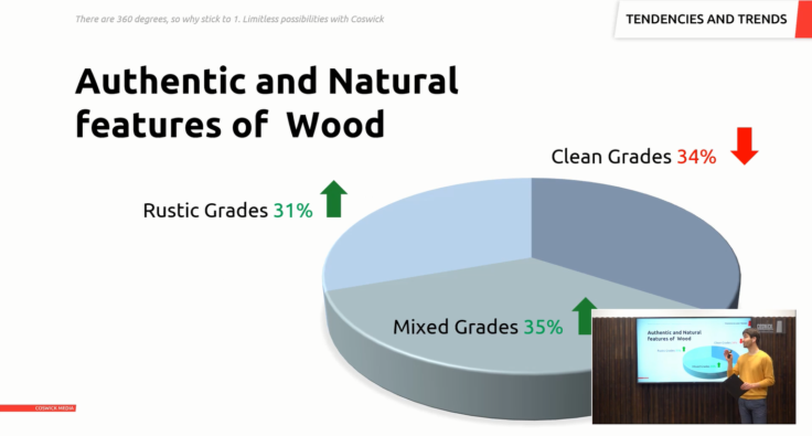 Pieprasījums pēc dažāda veida koksnes dizaina grīdas segumiem pēdējos gados ir izteikti mainījies. Ja iepriekš klienti izvēlējās “Clean” jeb tīra dizaina un bez zaru vietām grīdas segumus, tad šobrīd aktuāli ir “Rustic” un “Mixed” koksnes grīdas segumi.
