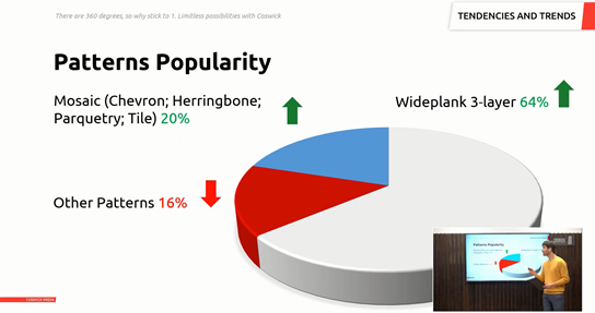 Pirms desmit gadiem vairāk nekā 50% klientu izvēlējās šauru dēļu grīdas segumus, bet šodien šī tendence ir mainījusies, galvenokārt izvēloties platu dēļu grīdas segumus.