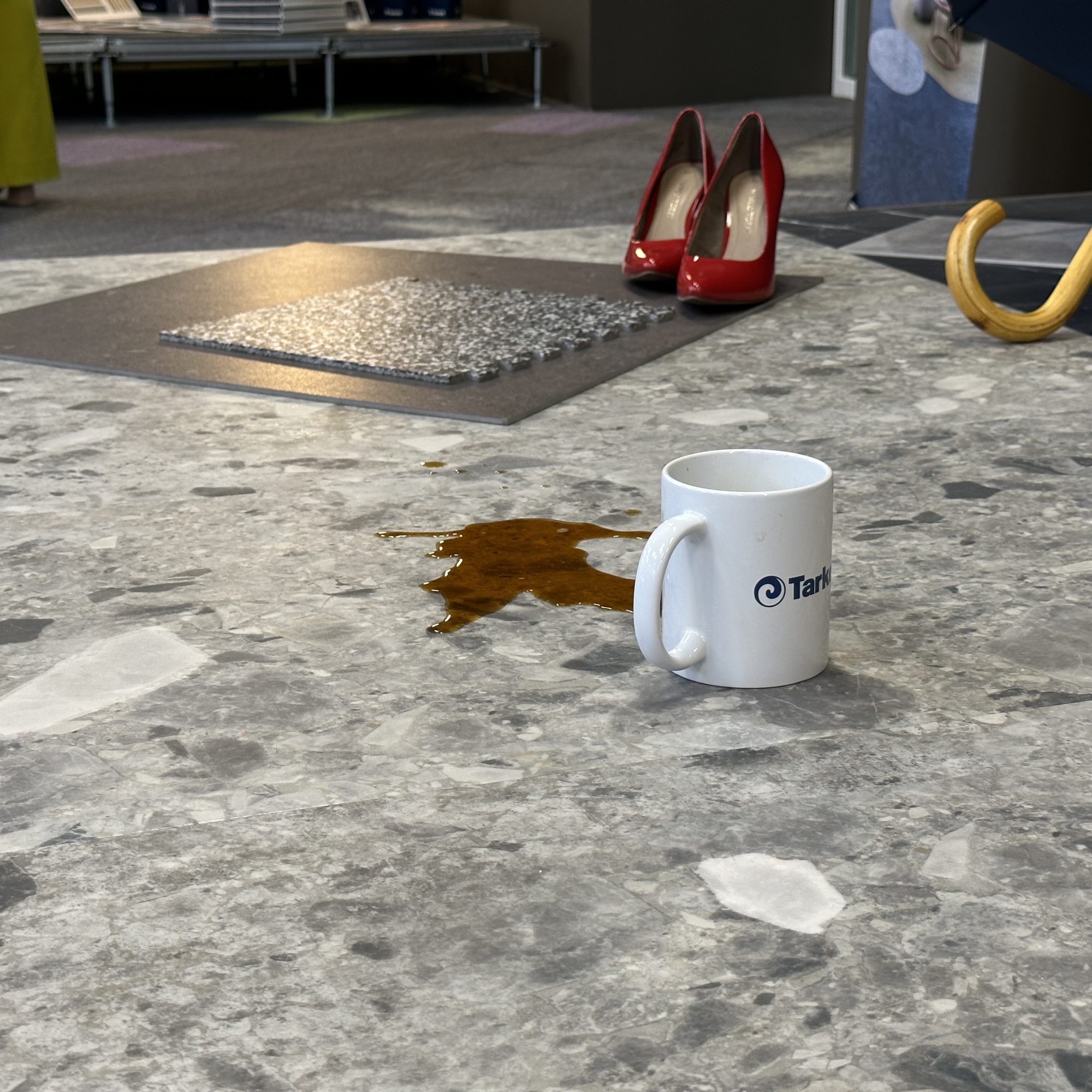 Ielūgtajiem viesiem bija iespējams noklausīties Tarkett ekspertu prezentāciju, apskatīt uz vietas dažādus paraugus, kas sniedza iedvesmu radīt pārsteidzošus interjerus mums apkārt – dzīvojamās telpās, kā arī slimnīcās, skolās, darba vietās, viesnīcās, lidostās un citur. Informatīvo semināru aizraujošāku padarīja eksperiments ar kafiju, kurā bija vērojamas Tarkett grīdas seguma izcilās priekšrocības – noturību pret traipiem un vieglo kopšanu.