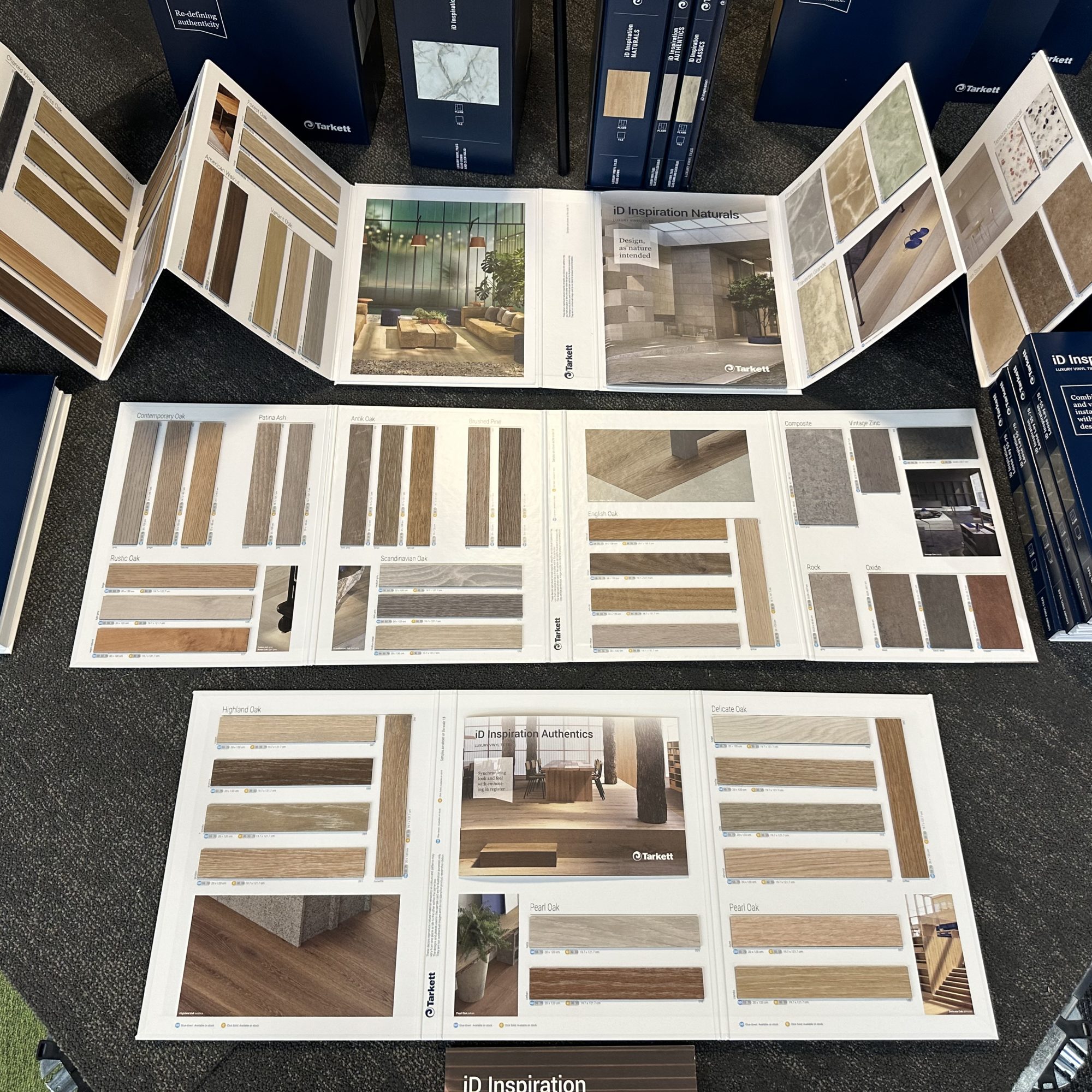 iD Inspiration krāsu un tēmu izlasītā kolekcija piedāvā dabisku nepārspēta platuma paleti, sākot no mūsdienām līdz klasikai. Trīs dizaina saimes – Dabiskais, Autentiskais un Klasiskais – izmanto digitālo drukāšanu, gravēšanu reģistrā un rotācijas dobspiedumu, lai ražotu visreālistiskāko moduļu vinila grīdas segumu tirgū. Katrs dabiskās kolekcijas dizains pirms digitālās drukāšanas tiek ieskenēts tieši no rūpīgi atlasīta koka vai akmens parauga, lai dalītos ar dabas nepilnību un nianšu brīnumu – tas ir nebijis pagrieziena punkts moduļu vinila dizainā.