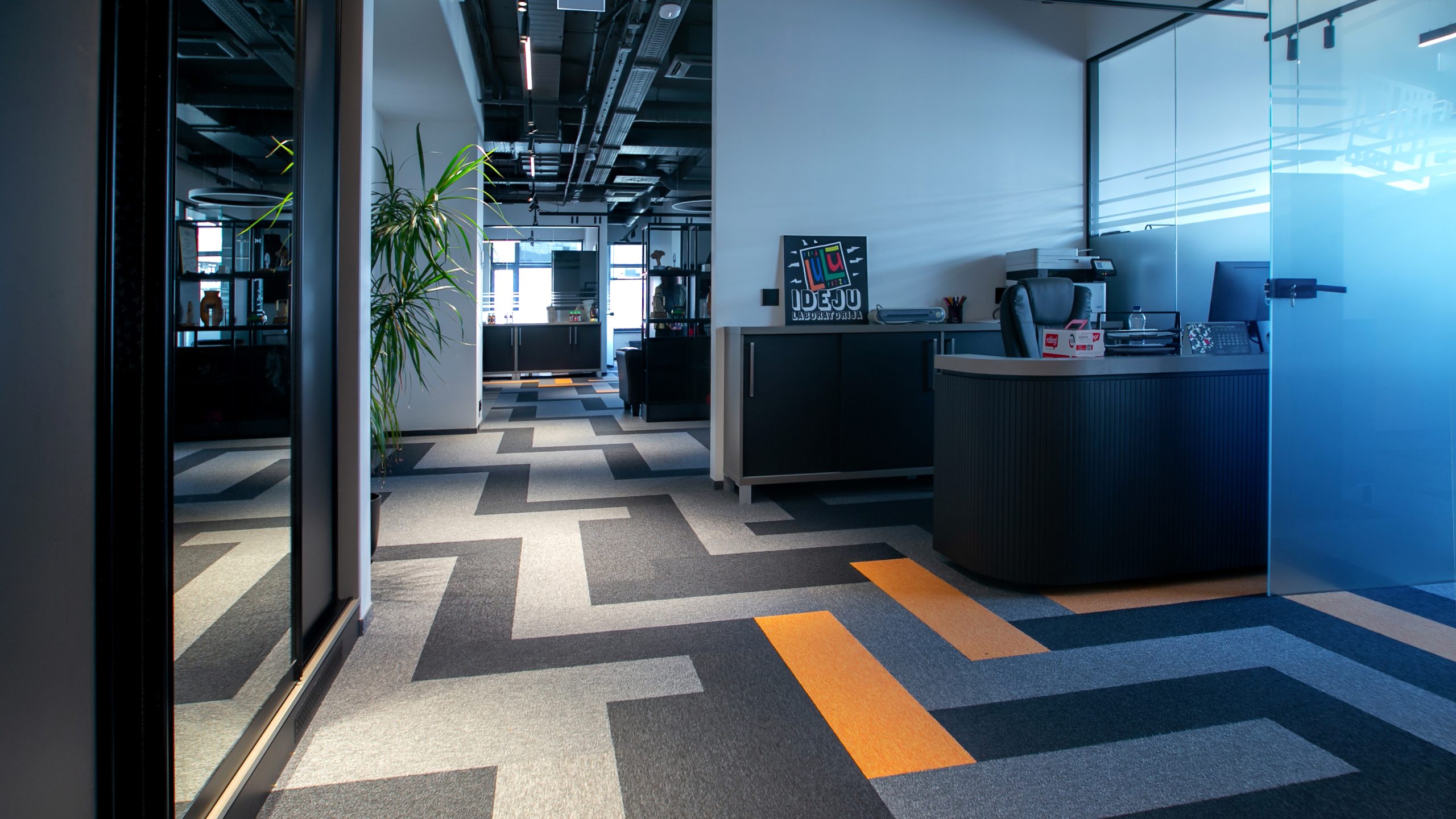 Projekta ietvaros no Reaton tika piegādātas Forbo Flooring paklājflīzes, kolekcijas Tessera un Layout & Outline.
