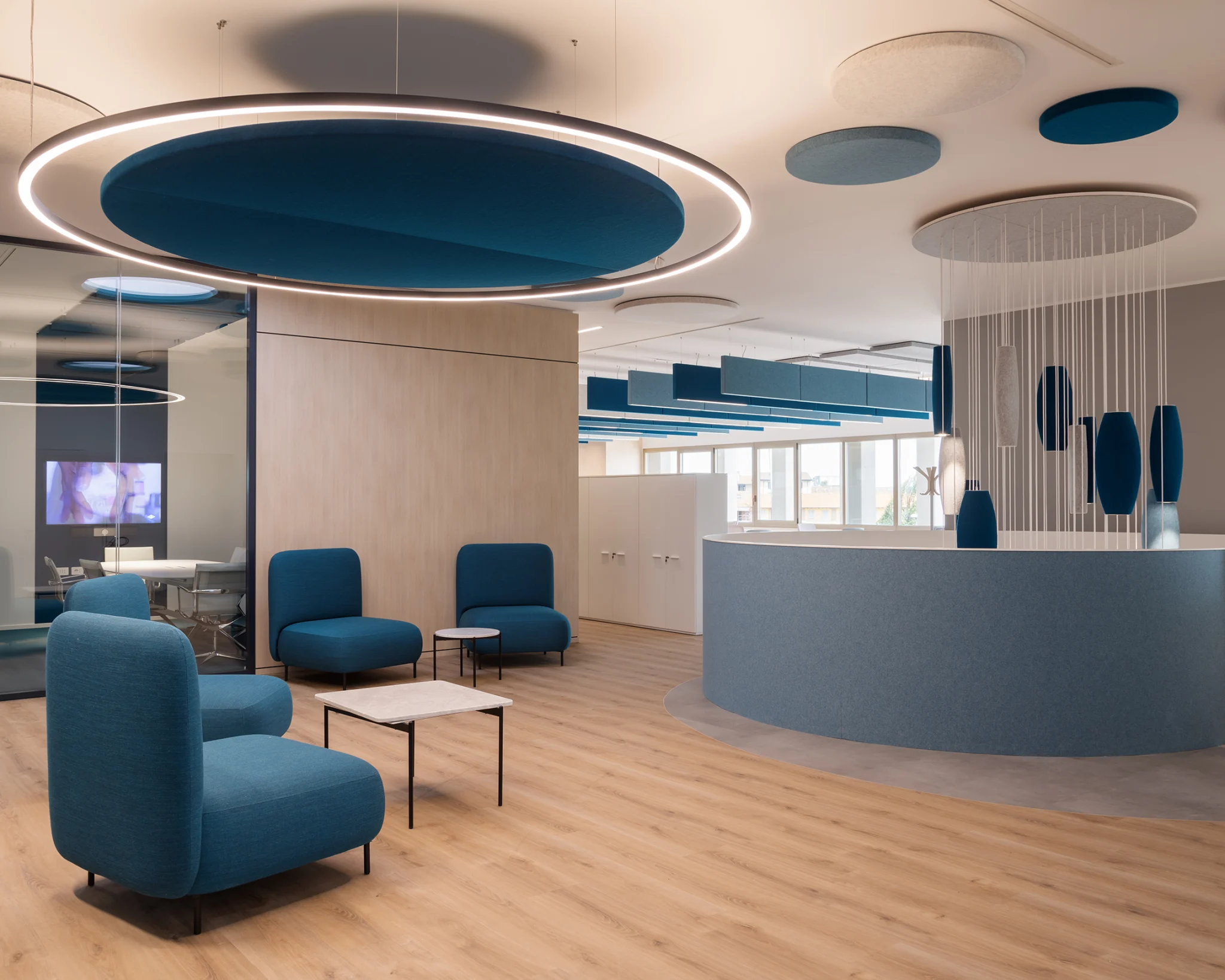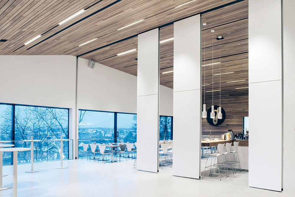 Mainīgas darba vides pieprasa elastīgus un skaņu absorbējošus risinājumus. Risinājumi: – Bīdamās starpsienas (Dorma Hüppe, SWG) – telpu pielāgošana, elastība – Akustiskie paneļi un griestu sistēmas (Slalom, Rockfon) – akustiskā komforta uzlabošana – Piekaramie griesti (Rockfon, Atena, Hunter Douglas, CBI) – skaņas absorbcija, dizains, funkcionalitāte
