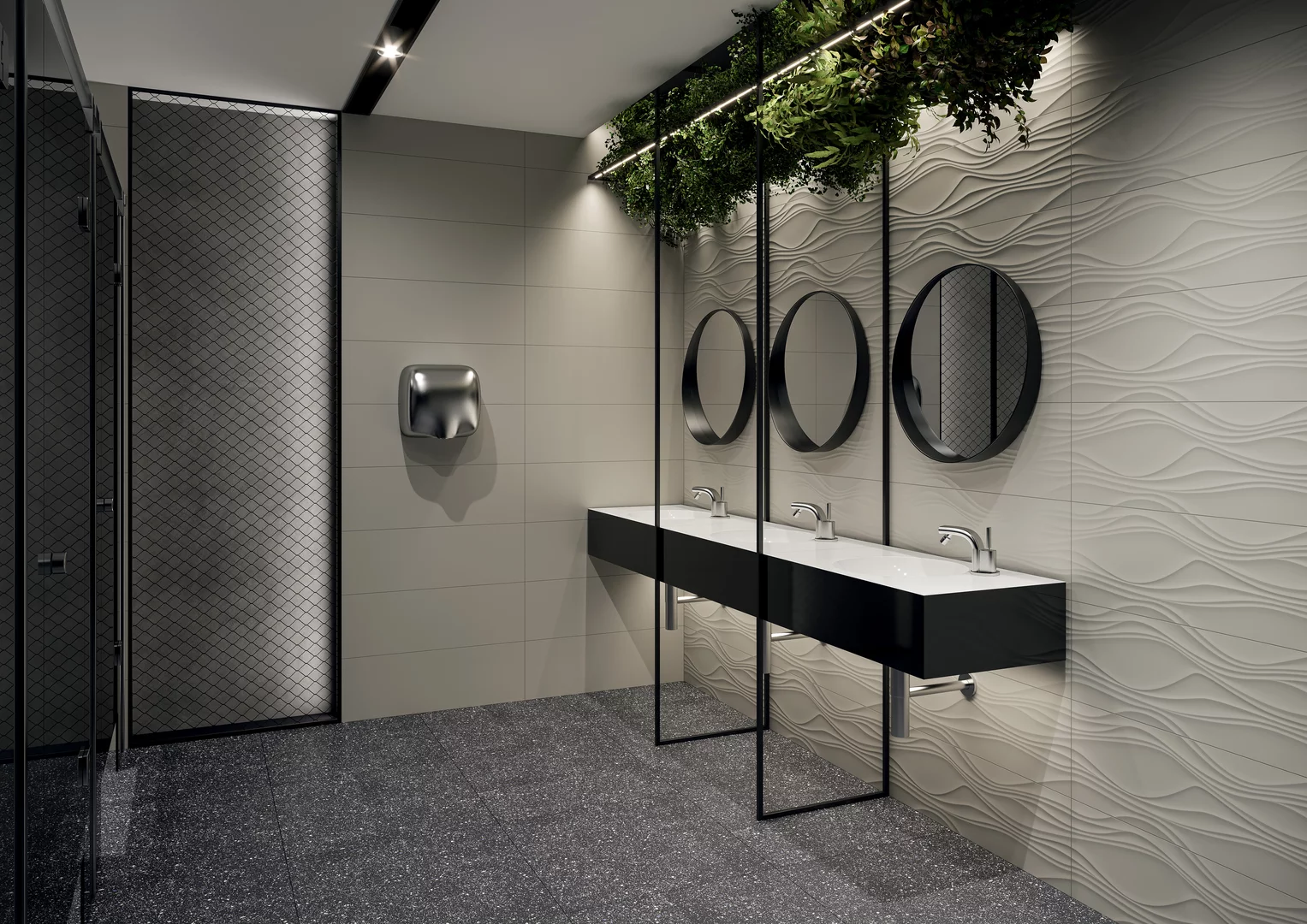 Keramiskās flīzes ir izturīgs, estētisks un viegli kopjams risinājums sanitārajām un sabiedriskajām zonām.