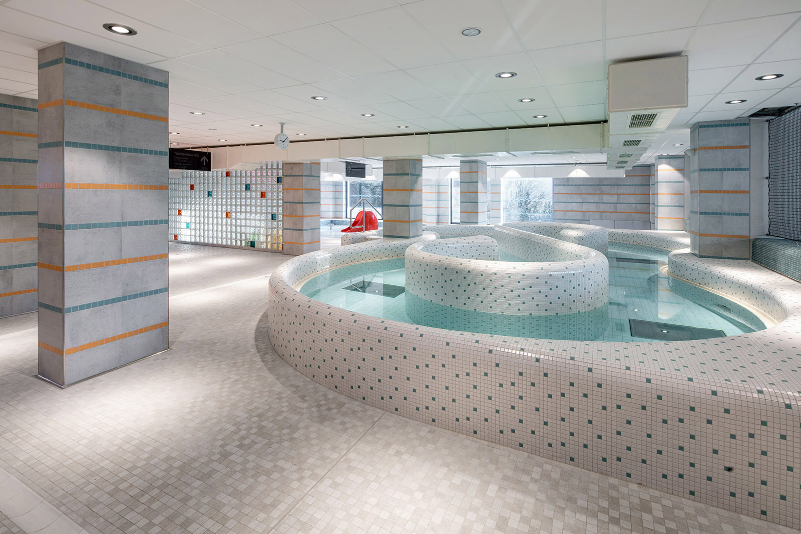 Speciāli izstrādātas keramiskās flīzes mitrām telpām – ģērbtuvēm, dušām un peldbaseinu zonām.