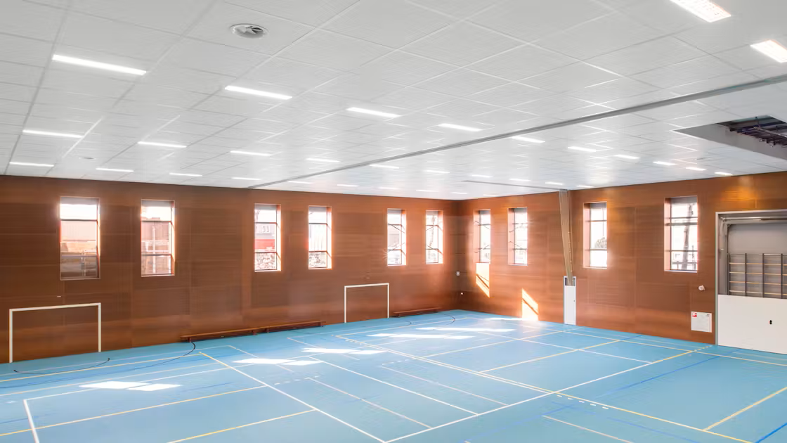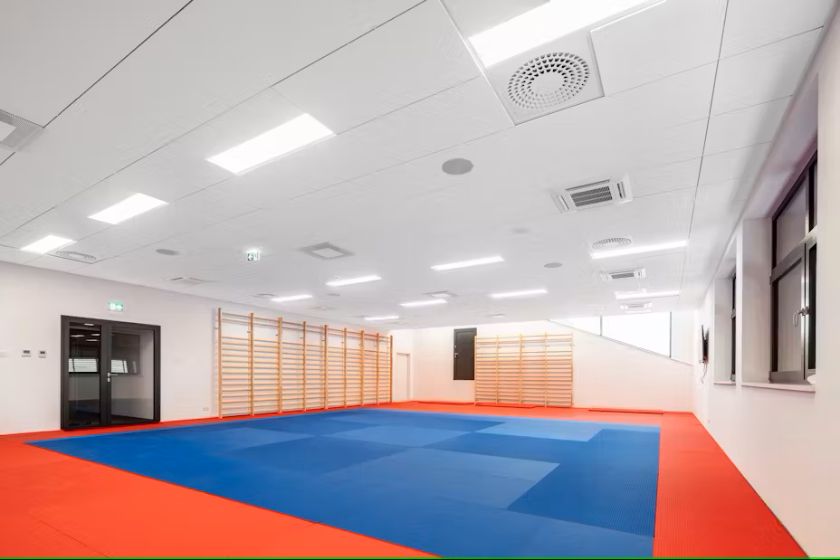 Lielās sporta hallēs svarīgi nodrošināt troksni absorbējošu vidi, kas uzlabo akustisko komfortu gan sportistiem, gan skatītājiem.